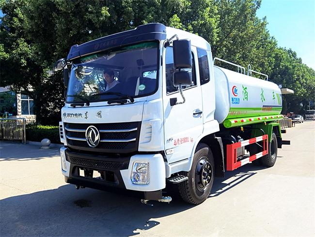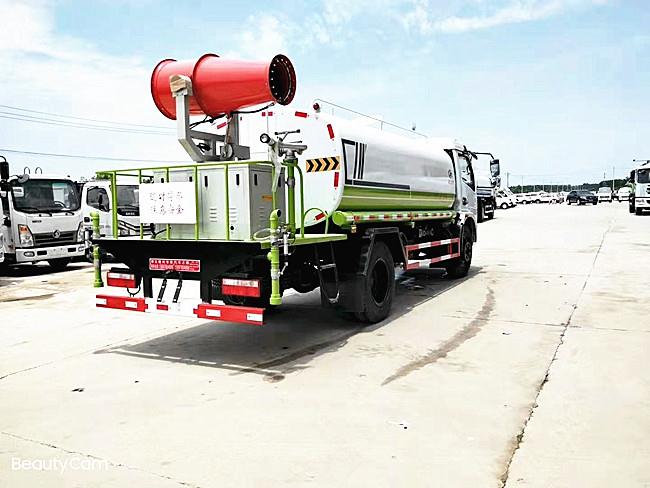 洒水车功能齐全,配备前冲、后洒、侧喷、绿化高炮,采用水泵,合理设计水路管道,气控取力器,作业能力强, 带1个消防接头,带1个自流阀,1个过滤装置、人性化爬梯及侧防护栏,安装洒水音乐喇叭。