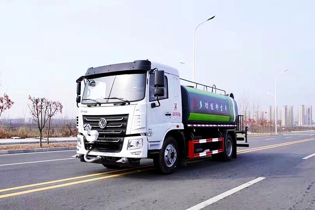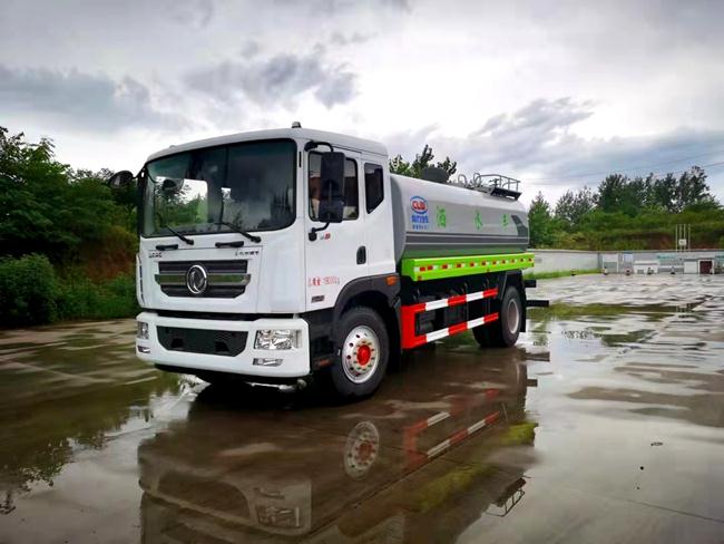 洒水车功能齐全,配备前冲、后洒、侧喷、绿化高炮,采用水泵,合理设计水路管道,气控取力器,作业能力强, 带1个消防接头,带1个自流阀,1个过滤装置、人性化爬梯及侧防护栏,安装洒水音乐喇叭。